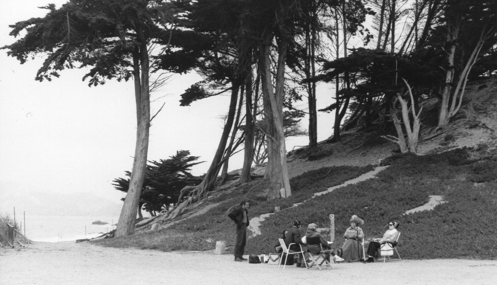 The cast and crew from By The Water seen by the water at Ocean Beach, California